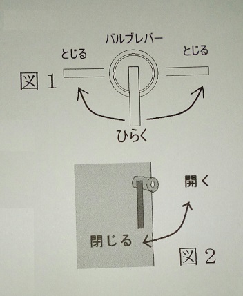 図2の金色のタイプは、レバーを下げると通路が閉じます。