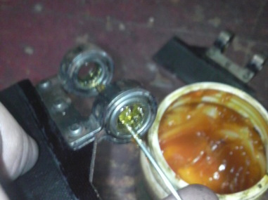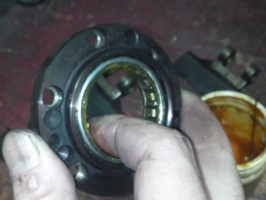 そこで、ベアリング用グリースを塗りこみます。(ホームセンターで売ってます)