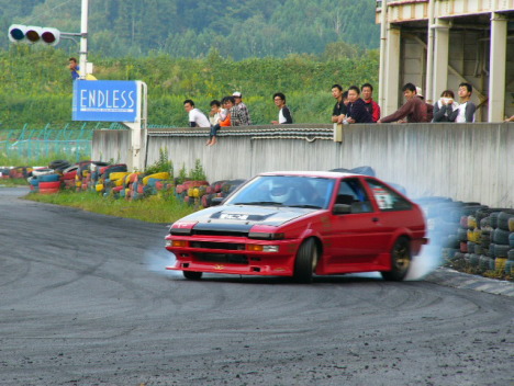 ケツ進入の大竹選手!タイヤがツラそうです!