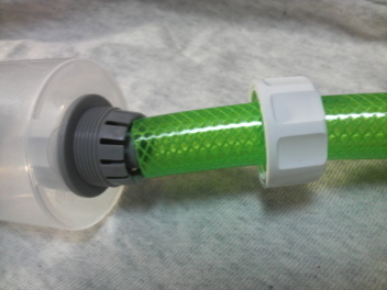 上記の部品に水道用のホースを接続して窓の外へオイルミストを排気することが出来ます。