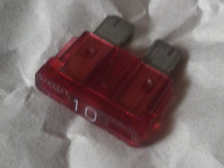 ↑使用するのは自動車用10アンペアヒューズ。大きさは昔からあるこのタイプの物です。