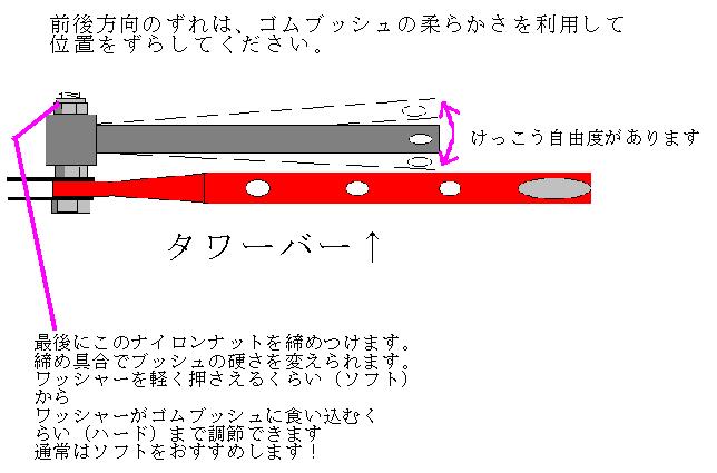 ※※Bのゆるみ止め付きナットの締め込み具合でブッシュの硬さを変えられます。