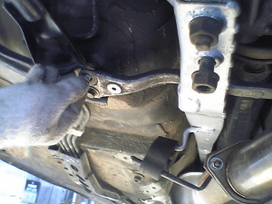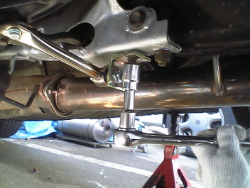 メンバーブレースのボルト1個を外してください(助手席側、後ろの1こ)