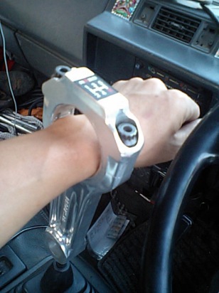 新型スペシャルシフトノブ!(汎用) BROOKS社製3000馬力のドラッグマシンのコンロッドを使用しておりますので 強度はバッチリ確保しております。 シフトパターンのシールで、車検も安心 写真のように手首を通すことにより、車との一体感が上がります。 (一体感は上がりますが、チェンジはやりにくくなります) また、緊急時の脱出に手惑いますので、素人の方には危険です、ハイ。 戻る